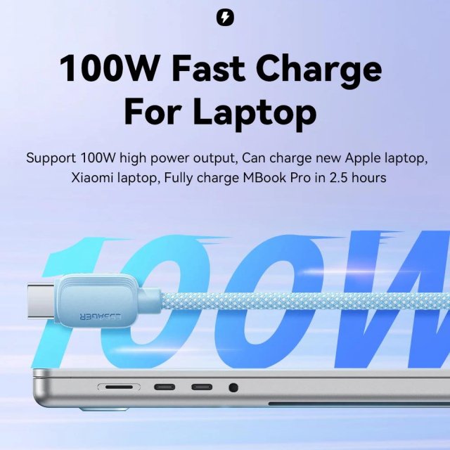These cables support PD 100W (20V/5A) fast charging, fully powering a MacBook Pro 16″ in about 2.5 hours. Thanks to the built-in E-Marker chip, power is delivered efficiently without overheating or harming your device. Plus, with data transfer speeds of up to 480 Mbps, you can sync files, photos, and videos in seconds while charging at the same time.
