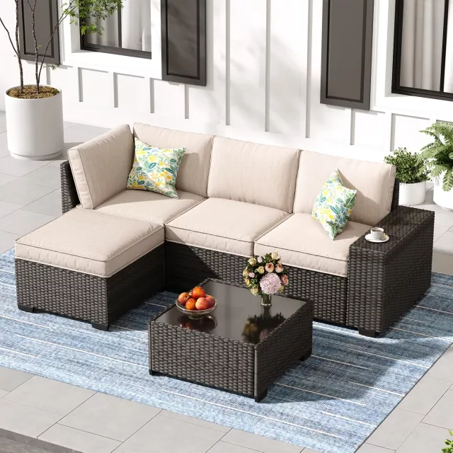 This sectional is ideal for patios, gardens, backyards, or even poolside lounges. Whether you’re hosting friends for a summer BBQ or enjoying a quiet evening with a book, this set will provide the perfect setting for any outdoor occasion. The sectional’s modular design allows you to easily rearrange the pieces to fit your space and needs, whether you want a spacious, inviting setup for gatherings or a cozy, intimate corner to unwind. Plus, the high backrest and wide armrests make it easy to relax in comfort for hours, so you can enjoy your outdoor space to the fullest.