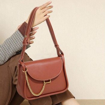 Women’s Soft Tofu Shape Shoulder Bag with Chain Detail