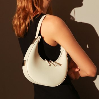 Vintage Cow Leather Half Moon Handbag for Women with Zipper Closure