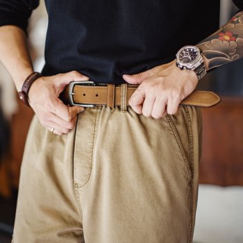 Men’s Genuine Leather Belt with Classic Single Prong Buckle