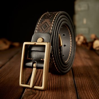 Men’s 1.5 Inch Vintage Handmade Leather Belt with Copper Buckle