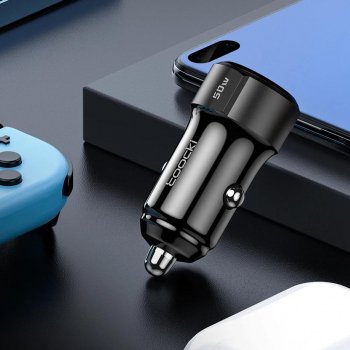 50W Fast Charging Car Charger for iPhone, Xiaomi, and More – USB C & USB-A