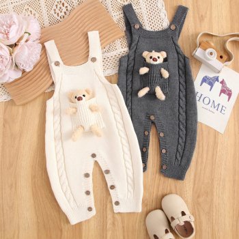 Spring Cotton Baby Knit Romper with Teddy Bear