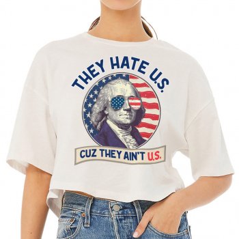 They Hate Us Cuz They Ain’t Us Cropped T-Shirt – Patriotic Celebration Trendy Tee – George Washington Women’s Basic T-Shirt