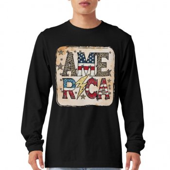 America Graphic Long Sleeve T-Shirt – Independence Day T-Shirt – Retro Design Basic Tee