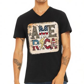 America Graphic V-Neck T-Shirt – Independence Day Basic T-Shirt – Retro Design Tee