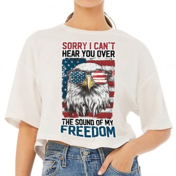 Can’t Hear You Over The Sound Of My Freedom Cropped T-Shirt – American Flag Trendy Tee – Cool Eagle Women’s Basic T-Shirt