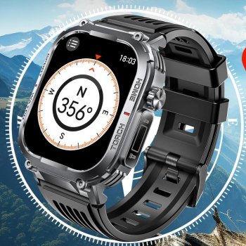 Rugged Outdoor Smartwatch with Compass, Flashlight & Fitness Tracking