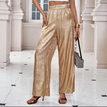 Spring Vintage Metallic High Waist Wide Leg Casual Pants for Women