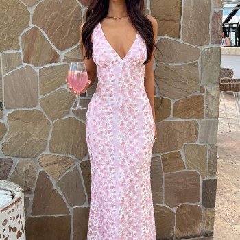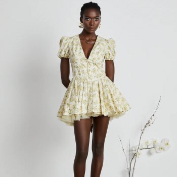 Elegant Yellow Floral Print Women’s Vintage Dress