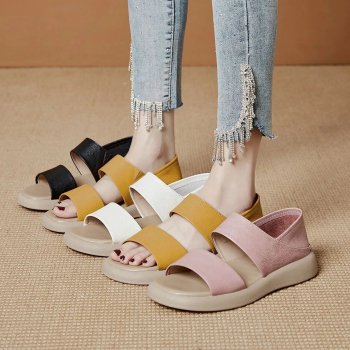 Thick Sole Women’s Genuine Leather Flat Sandals