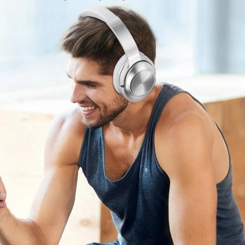 Active Noise Cancelling Wireless Over-Ear Headphones with Deep Bass & Mic