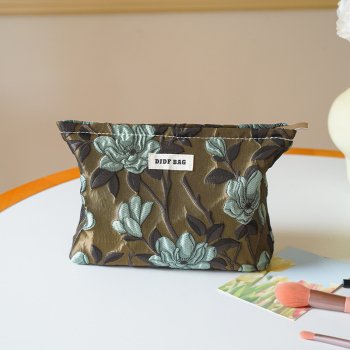 Dark Green Lotus Floral Large Capacity Cosmetic & Travel Toiletry Bag