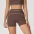 The high-rise waistband sits comfortably above the hips, helping to smooth your midsection and keep the shorts in place during movement. The slim fit leg design prevents riding up, so you can focus on your workout instead of adjusting your clothes. With a clean, pocket-free look and solid colors, these shorts easily transition from activewear to casual athleisure.