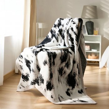Soft Acrylic Knit Throw Blanket with PomPom Design