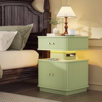 Contemporary Nightstand with Charging Port, LED Lighting, and Dual Storage