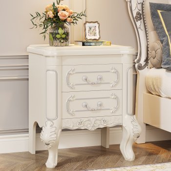 Elegant White Nightstand with 2 Drawers – Carved Bedside Table for Bedroom & Living Room