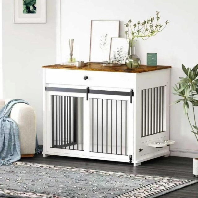 Indoor Wooden Dog Crate with Storage Drawer and Sliding Door for Medium to Large Dogs