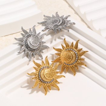 Retro Moon & Sun Gold Stud Earrings