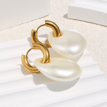 Matte Acrylic Pearl Stainless Steel Earstuds with PVD Gold Plating for Women