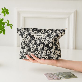 Green Floral Travel Cosmetic Bag – Small Makeup & Jewelry Organizer Pouch