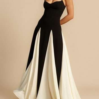 Elegant Contrast Patchwork Mesh Women’s A-line Maxi Dress