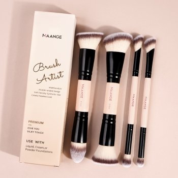4-in-1 Double-Ended Makeup Brush Set for Foundation, Powder & Eyeshadow