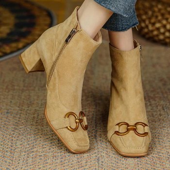 Women’s Suede Fringe Ankle Boots with Chain and 2.4-Inch Chunky Heel