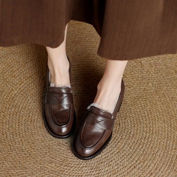 Winter Genuine Leather High Heel Loafers for Women