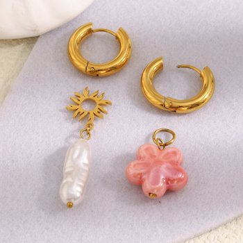 Elegant Glass Flower Imitation Pearl Stainless Steel Earrings – PVD Gold Plated