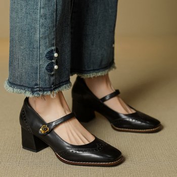 Spring Women’s Genuine Leather Square Toe Chunky Heel Mary Janes