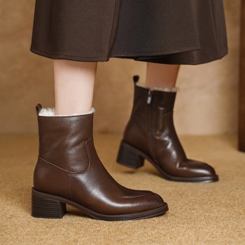 Genuine Leather Wool-Lined High Heel Ankle Boots for Women