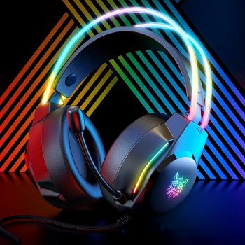 Wired RGB Gaming Headset with Noise-Cancelling Mic and Button Controls for PC