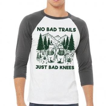 No Bad Trails Just Bad Knees Baseball T-Shirt – Retro Adventure 3/4 Sleeve – Cute Bears Raglan Jersey Shirt