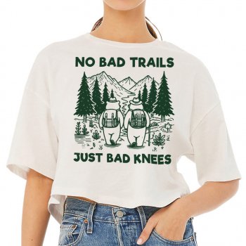 No Bad Trails Just Bad Knees Cropped T-Shirt – Retro Adventure Trendy Tee – Cute Bears Women’s Basic T-Shirt