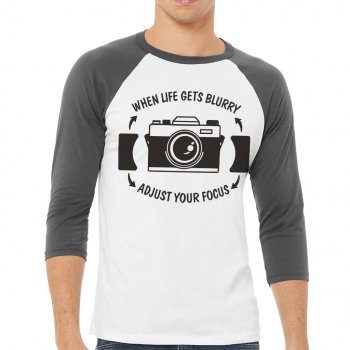 When Life Gets Blurry Adjust Your Focus Baseball T-Shirt – Camera 3/4 Sleeve – Funny Photographer Raglan Jersey Shirt