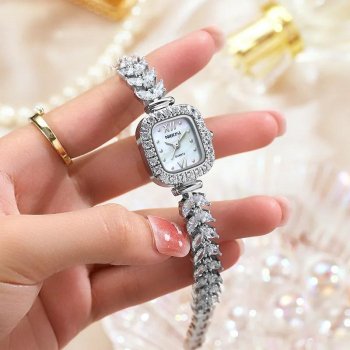 Luxury Square Stainless Steel Watch for Women with Rhinestones