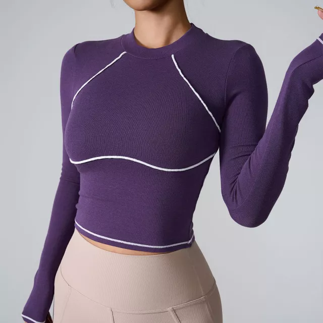 Crafted from a soft yet durable blend of cotton, nylon, and spandex, this sports top feels smooth against your skin while offering the stretch you need to move freely. The breathable knit fabric helps regulate body temperature, making it ideal for workouts in every season. Long sleeves provide light coverage and warmth without feeling heavy, so you stay comfortable from warm-up to cool-down.